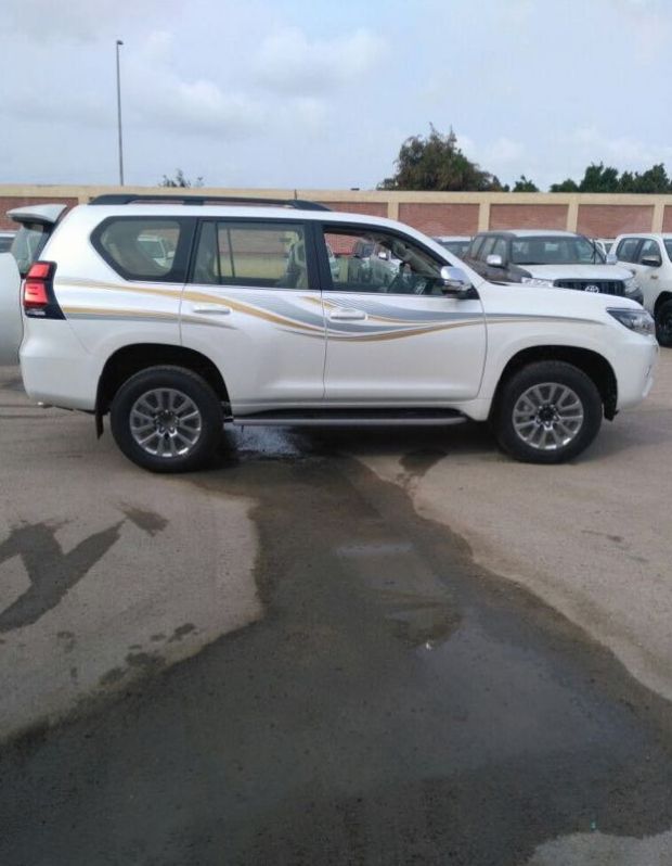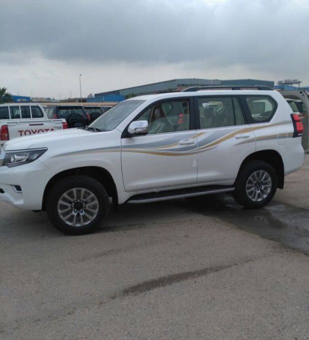 19款中东版丰田霸道4000九气囊天窗版外观大气动感,整车造型既动感大气又独具个性魅力,前后大灯晶莹剔透,发出无限的万丈光芒。后挂备胎上面带有字母贴的样式,装饰后更具时尚感,霸气的车身造型,更坚毅的前脸,更霸气的后挂备胎设计,设计的更具现代美感。