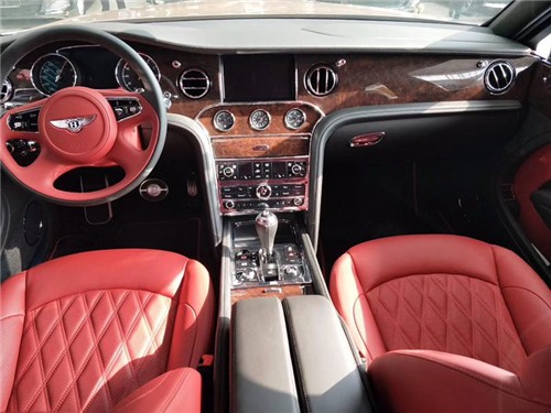 18款宾利慕尚加长轴距版配置: 6.8T 宝石红/奶黄色配海豚灰现车手续齐对比刺绣,穆勒包配抛光轮(21寸抛光轮,穆勒定制踏板,铸币式车门把手,前后羊毛地毯(附带标准加长地毯),高级菱形座椅,4座位均配有宾利徽章刺绣,后侧化妆镜饰面环绕), 宾利娱乐包带地图(宾利影院--双10.4寸自动折叠平板电脑带地图,Naim高级音响),优选包(小飞人,宝石燃油盖,遥控车库门开启装置,城市雨伞2把,泊车钥匙等),舒适包加长版(航空座椅,座椅按摩通风,舒适头枕,高级阿尔卡塔纳鹿皮头枕垫),明亮不锈钢门柱装饰,明亮不锈钢矩阵式进门气格栅,车门内侧上衬板带有宾利飞翼徽标及镀络饰条,暗色伯尔核桃木实木们 条,钻孔运动踏板,穆勒定制带照明功能酒柜和宾利水晶玻璃香槟杯及醒酒器,后排小桌板,4辐真皮方向盘,内饰情绪灯,角落侧视摄像头,数字电视及电台,6碟播放器,备用胎等。