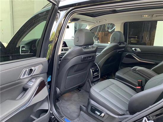 内饰采用的是宝马最新的设计语言,中控采用两个12.3寸的大屏幕,手能摸到的地方全都包裹着真皮,X5同款的水晶换挡把,配上车顶装备的隐性星空顶棚,奢华感与科技感并存。来看一下后排空间宝马X7有着超过3米1的轴距,第2排的腿部空间有接近三拳,后排还配备独立双区空调,比较遗憾的是第二排没有配备座椅通风功能。我们把第2排座椅调到合适位置,然后看一下第三排空间。得益于超长的轴距,宝马X7的第3排空间与竞争对手相比丝毫不逊色,除了地板高一点,腿部和头部空间都较宽松。