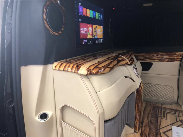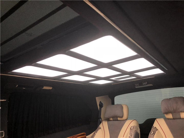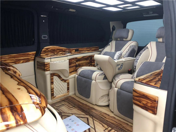奔驰V250改装商务车房车价格内部装饰充满法国式的浪漫,九宫格灯珠镶嵌的椭圆形豪华顶棚造型设计气势磅礴,沿车身走向,两端与驾驶室隔屏和后门相衔接,形成古典对称的流线型图案。奔驰V250改装商务车全车新款电动精美布艺窗帘、控制车内电器的触摸屏操作,无不体现至尊豪华的商务形象,在与驾驶室全隔屏下,设置了多功能组合柜吧台,闲暇时与家人朋友来杯咖啡或是红酒,品味慢酌细语间的浪漫情怀。7座,家居、商用适合不过、Nespresso咖啡机,对车主的冷暖饮食需求关怀备至。