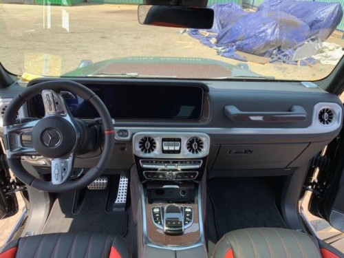 19款奔驰G63内饰方面,新G63保留了新G500的整体设计,除配色差异外,新车还换装了全新造型的平底式AMG运动方向盘,其两侧配以打孔皮质包裹,下部镀铬装饰的造型也与新G 500明显不同,看上去十分战斗。此外,全液晶仪表盘+中控大屏的双12.3英寸屏幕设计在新车上也没有缺席,营造出了浓郁的科技感,2019款奔驰G500价格G63报价G63先型特别版多少钱。