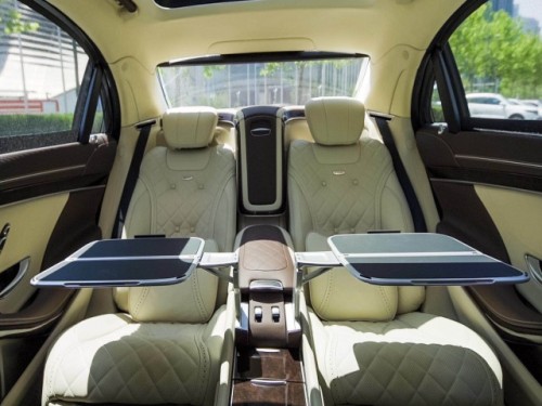 奔驰迈巴赫普尔曼采用浅色设计,充分体现了奔驰的华贵之美,仪表盘依然是炫目的液晶式设计,采用全新的Air -Balance空气平衡系统,并为这款车内香氛组件提供沉香木味香水,令车内弥漫沉香木的迷人气息,排气管还是分为双侧双出和双侧四出,不管是哪种都比现款S级的排气管更贴合车身。