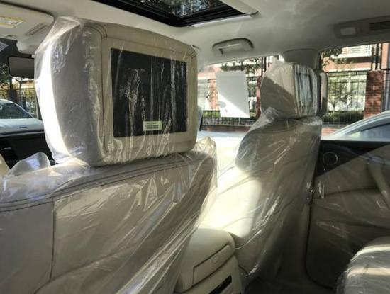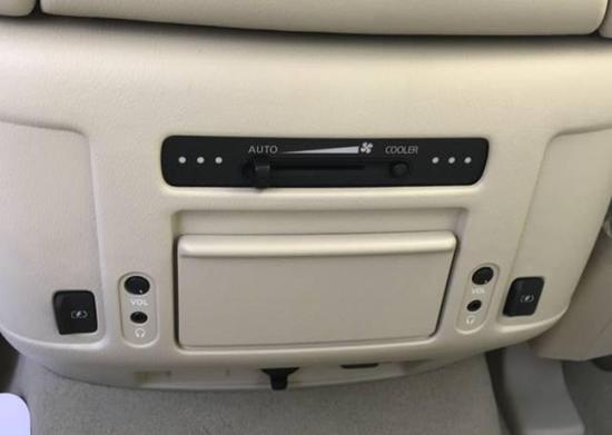 还有头枕式DVD后排娱乐系统,娱乐系统可以佩戴耳机欣赏,耳机插孔在中央扶手(扶手箱内是车载冰箱)箱的后方。