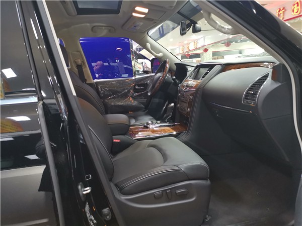 19款英菲尼迪QX80的内饰基本与现款保持一致,有着十分浓厚的豪华氛围,也略显年代感。前排座椅宽大舒适,真皮包裹配合菱形缝线看起来很漂亮,主驾驶座椅配有记忆功能。后排座椅可选装行政套装,采用独立设计,中间的扶手杯架宽大,老板座起来很舒服。