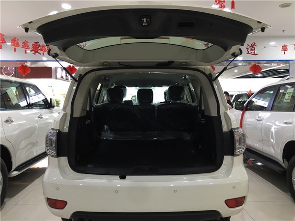 2019款日产途乐Y62的大尺寸车厢内设置三排座椅,第三排乘坐两个成年人也是没任何问题。途乐XE底挂全尺寸备胎,油箱也达到140L,后备箱底部不是很低,但第三排座椅放平后,后备箱比较平整,还是很好用的。