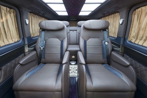 奔驰V260加高顶车身发明的相似奔驰斯宾特豪华房车的前后舱全距离式计划格局,使二者有相对独立的空间和空气感,一同又具有了更佳完备的隔音防噪体现,集 成了32寸LED液晶电视,环绕式立体声音响以及进口时钟套件,下设多功用一体式吧台,钢琴烤漆原料的桌台,预留了行车途中有用的杯托计划,其下依次为后 舱电器触控屏与蓝光DVD多媒体播放模块。