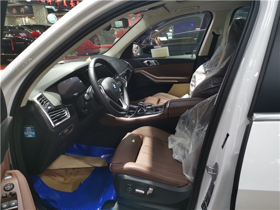 19款宝马X5内饰设计更高档,采用三辐式多功能方向盘设计,仪表盘跟宝马X7 (配置|询价)基本一致,采用无框后视镜设计,中控台底部还配备了无线充电功能。中控功能键盘也重新设计,中控出风口中间还配备了一块小尺寸液晶屏,上面显示一些空调温度和风量,出风口两侧的风量滑轮更精致。