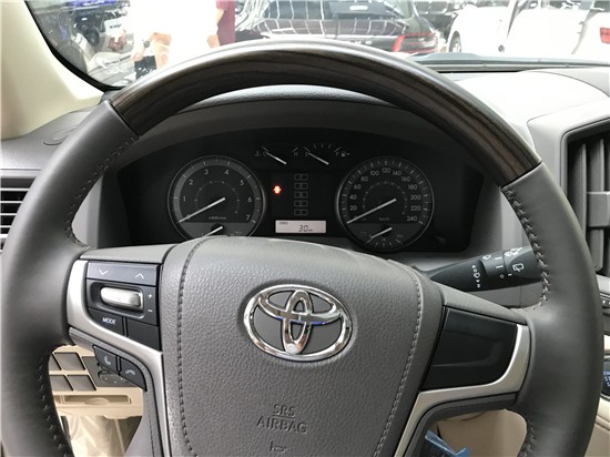 配置19款酷路泽4000GXR,白米,后挂,八气囊,双油箱(93+45),天窗,285/65R17铝轮,6速,7座,主驾驶电动座椅,多功能桃木方向盘,桃木内饰,镀铬门把手,彩条,无钥匙进入,迎宾灯,一键启动,自动空调,冰箱,巡航,胎压监测,拖钩,前流水灯,