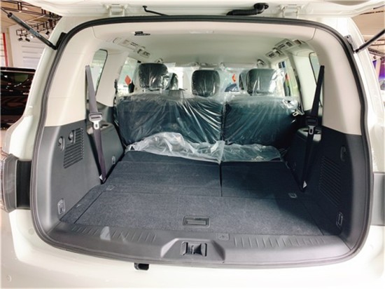 19款日产途乐Y62采用了4活塞卡钳高性能前制动系统,大大提升了途乐的安全性能。强大的动力输出和重组的后备功率几乎可以带途乐去探索任何的艰难险阻。作为一台全尺寸SUV,空间绝对是其最大的优势。其中储物空间非常多而且尺寸也同车身一样都非常大。中央扶手箱配有制冷功能,在夏天可以当做车载冰箱使用。车身尺寸方面是途乐的优势,长宽高为5140/1995/1955,轴距3075。