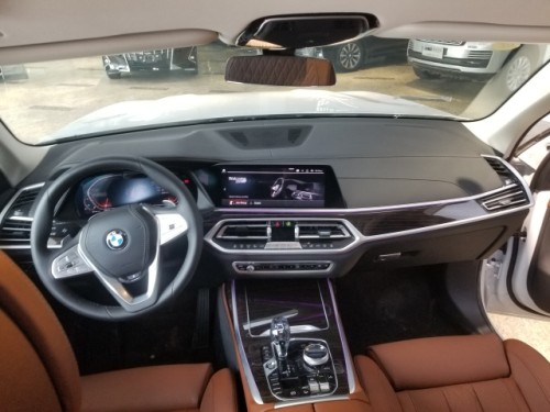 19款美规宝马X7M运动 炭黑/棕 六座 寒冷包(方向盘加热 扶手加热 前后座椅加热,5区空调) 停车辅助包(360环影 自动泊车) 豪华包(哈曼 中控手势控制 抬显 冷热杯架 摇启 电吸门 后排电动遮阳帘) M运动包 21寸运动轮毂 M运动底盘调教 蓝色M运动大卡钳拖钩 二排领导座椅 星空顶 多轮廓豪华座椅带20项座椅调节