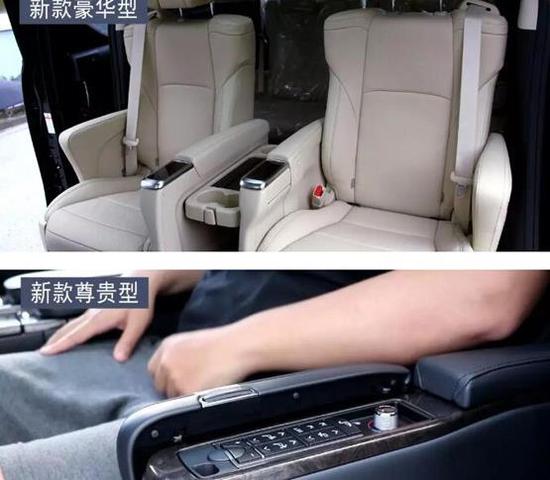 并且,尊贵型后还比豪华型多了几项功能:第一,是后排座椅通风,豪华型没有;第二,是后排座椅记忆,豪华型也没有;第三,是后排腿托伸缩功能,豪华型虽然也有推脱,但是无法像尊贵型那样进一步伸长;第四项,是小桌板,方便老板在后排办公和签字,这也是豪华型所没有的。