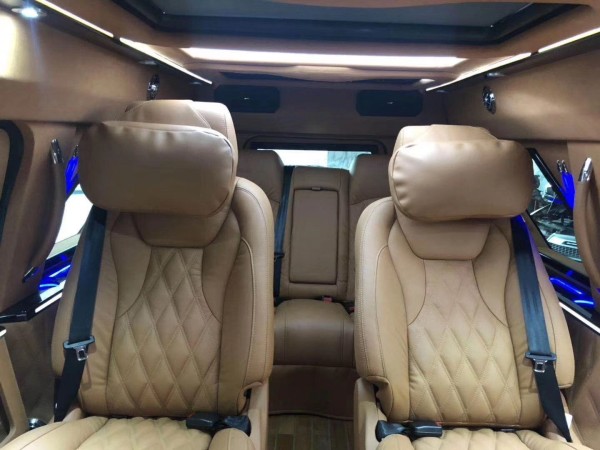 乔治`巴顿单由外观设想它的内饰风格,乔治巴顿的车内布局一定会被想象成战车那种简约硬朗的驾乘风格,但是当您拉开车门,车内所展露的豪华设施定会为之而惊讶内饰,看上去非常舒服,有着一种优雅古典的格调,前、后舱之间设有隔屏,配以22寸超薄显示器,在最大程度上保证了后舱乘客的私密性的同时又可以在旅途中享受影音快乐。