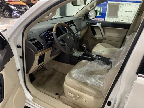 19款霸道4000丐版 配置:18款霸道4000TXL丐版无窗,珍珠白米(金属漆),配置:两气囊,智能卡、一键启动、PRADO字母贴,脱钩、18铝轮、黑踏、多功能方向盘、胎压检测、冰箱、大屏、三区空调、电动折叠后视镜