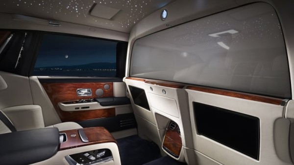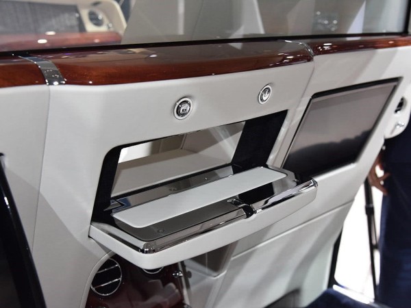 关于娱乐设备,前排座椅后方分别配备一块12英寸的显示屏,可显示接入HDMI连接的移动设备的信息,劳斯莱斯表示这样的设计可以让乘客在汽车行驶中“与高度安全的个人设备实现同步”。同时汽车还支持PlayStation游戏机功能。
