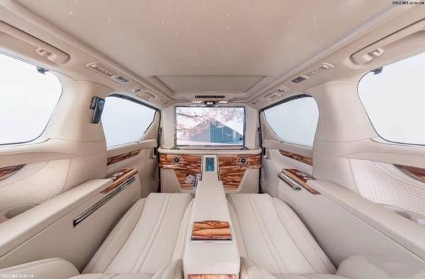 车门采用的是电动滑门的开关方式,提升了整辆车的豪华感,安放了家庭电压的电源接口和USB手机接口,保证了电用设备的持续使用,后座车厢前还按有20多寸的液晶电视,座椅上安放了智能遥控,配有卫星导航的汽车,使车内可以观看任何一款电视,用于打发车中闲暇时光,再加上车中的LED灯源,提高了车内的科技感,同时配备了自动调光的阅读灯,让你感受到不一样的阅读体验。