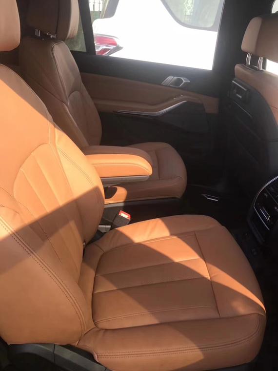 宝马X7座椅方面:X7标配7座座椅,2+3+2的布局,中间两个独立座椅是选装件,也可选6座。在功能方面,全车座椅标配座椅加热,前排座椅可选装通风和按摩。第三排座椅也是电动调节。后排娱乐也是选装的,除了屏幕之外,后排娱乐系统还包括蓝牙DVD、两套独立耳机、HDMI接口,另外X7为第二排和第三排各设两个USB用于充电。四驱自动空调是X7的标准配置,可以选装五区空调,这样以来第三排乘客也能自己调节温度,十分周到。另外全新宝马X7有一套香氛系统,有8种气味可供选择。