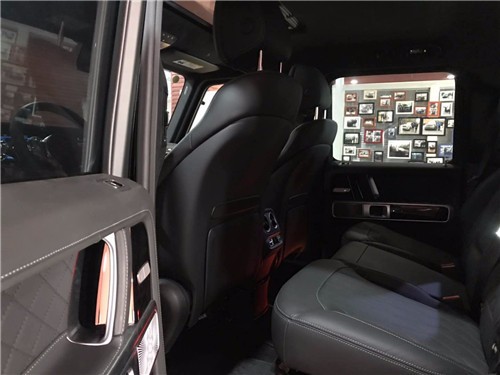 新款奔驰G63 (配置|询价) AMG内饰方面,新G63保留了新G500的整体设计,除配色差异外,新车还换装了全新造型的平底式AMG运动方向盘,其两侧配以打孔皮质包裹,下部镀铬装饰的造型也与新G 500 (配置|询价)明显不同,看上去十分战斗。此外,全液晶仪表盘+中控大屏的双12.3英寸屏幕设计在新车上也没有缺席,营造出了浓郁的科技感。