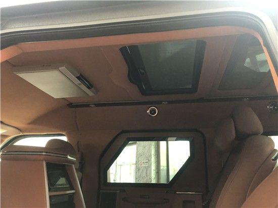 乔治巴顿战车后排航空座椅电动多向调节,加热按摩功能,车顶探照灯,高级鹿皮及乔治巴顿标志全舱柚木地板,吧台3D式设计、白色光带及氛围灯,座椅中央扶手,马鞍式设计带击沉触摸控制系统,可开启式天窗。