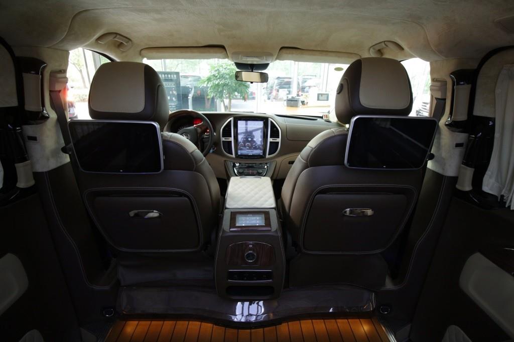 后排的两个独立的总统座椅是采用航空级别设计的,每条缝都是手工缝的,菱形格子花和高级皮革给身体形状带来了更舒适的体验,同时,每个座椅具有旋转、供电、按摩和通风的功能。还有许多更亲密设计的枕脚拖头。后舱装有独立的空气蒸发器和完全通风。它可以让汽车里的空气长时间保持新鲜。它可以帮助您享受您的旅行和商务旅行的悠闲时光。