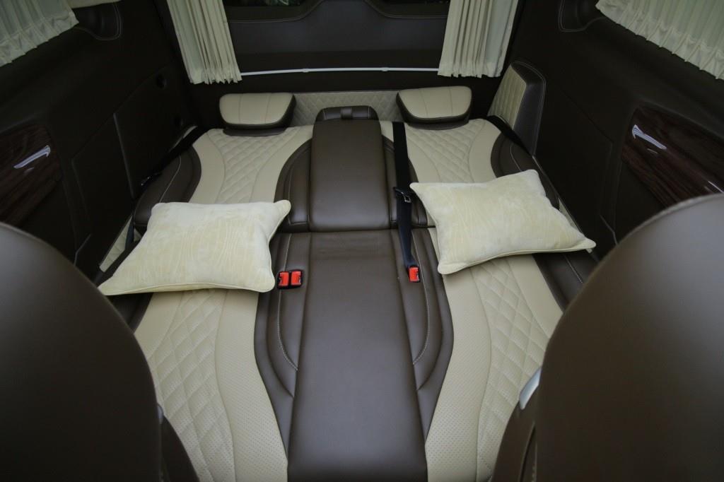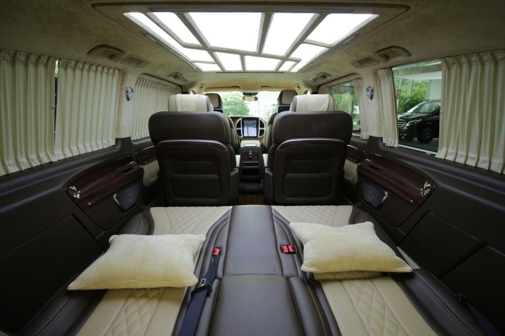奔驰威霆改装商务车高顶配置表:全车采用原一次性冲压钢制车顶、柚木地板、电子触摸屏、可移动办公桌、立体环绕声系统、进口空气座椅(通风、供暖、按摩、电动腿拖、前后调整,旋转180度)。