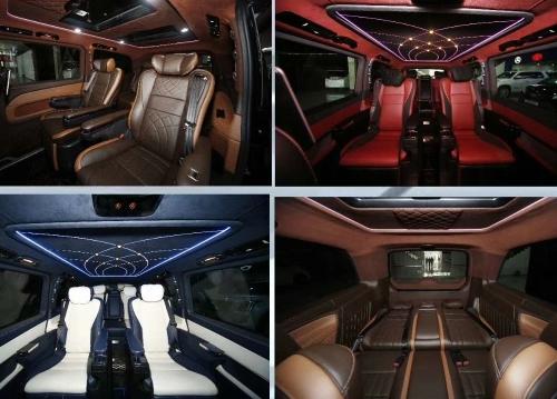 奔驰V250在内部装潢上也进行升级,车体提供真皮、Alcantara以及木材和碳纤维多种材质可供选择。而MPV车型看中的合金踏板、合金门把手以及内装台板等这款车都有所配备。科技配置还有AppleTV、两个独立15.6英寸显示屏、蓝光播放器以及DVB-T信号接收系统等。