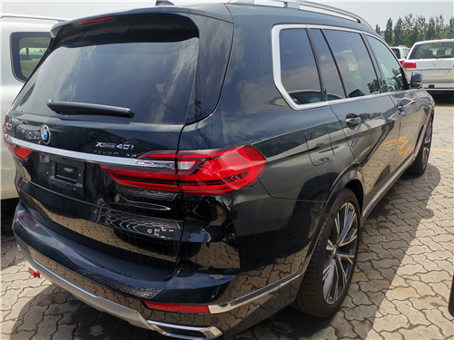 宝马X7车尾与车顶的轮廓接90°,除了能为第三排提供不错的头部空间,这样的设计还能让车辆整体的视觉重心往后移,也是豪华车设计的一大特点。车身尺寸方面,X7的长宽高分别为:5163mm、2000mm、1835mm,轴距为3105mm,多项参数均领先奔驰GLS (配置|询价)。尾部的设计扎实饱满,类似梯形的轮廓营造出低重心的感觉。尾门则沿用了X5上下开合的形式,实用性得到提升。