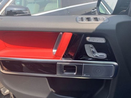 19款欧规G500 白/红 422马力 7速 19黑轮 氙灯 LED日间行车灯 电动调节带记忆 真皮座椅 前后加热座椅 大屏 多功能桃木方向盘 三把差速锁 换挡拨片 前雷达 天窗 电动调节折叠后视镜 脚踏 后挂备胎(同色不锈钢环绕硬备胎罩) designo高级皮革座椅