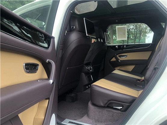 宾利添越后排宽大的座椅舒适性表现如前排一样优越,座椅质地也很柔软,包裹性和支撑性都很强,刺绣标示清晰夺目。来到后排,奢华的工艺依旧逐一体现,宽大的座椅舒适性表现如前排一样优越。五座版座椅空间非常灵活,后排靠背可按比例放倒。正常储物空间为430升;遮物帘收起时为590升,继续放倒座椅,最大空间可达到1300L。地板采用全绒面材质包裹,再一次提升了豪华质感。