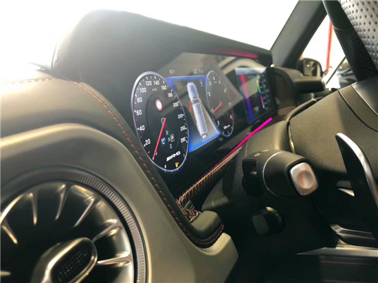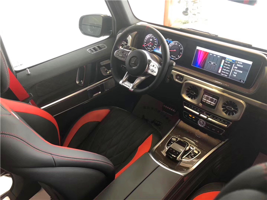 19款奔驰G63AMG无论是轰鸣的排气声浪,还是枪栓般的车门上锁声音都会令人心旌摇荡。初次接触G63的车迷需要一段时间来适应它的坐姿和乎垂直的挡风玻璃,而一旦熟悉之后,你就会彻底沦陷于它宽大的座椅中。豪华精致的真皮包覆提供了足够的舒适性和支撑性,通风和加热功能让乘客免受高温和寒冷的煎熬。中控台多处均采用碳纤维材料覆盖,带彩色TFT显示屏的AMG仪表盘、AMG主菜单和单独的挡位显示器以及采用白色照明的AMG门槛。名贵的选材及精湛的内装令人拍案叫绝。