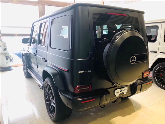 19款奔驰G63 (配置|询价)则使用5.5T V8引擎,AMG调校,最大功率585马力,最大扭矩850牛·米(老款为570马力和760牛·米),0-100km/h驾驶4.4秒,比老款快0.9秒,最高速度也由210km/h提高到了240km/h。AMG改装G63还可提供侧向排气管等更个性化的选装。