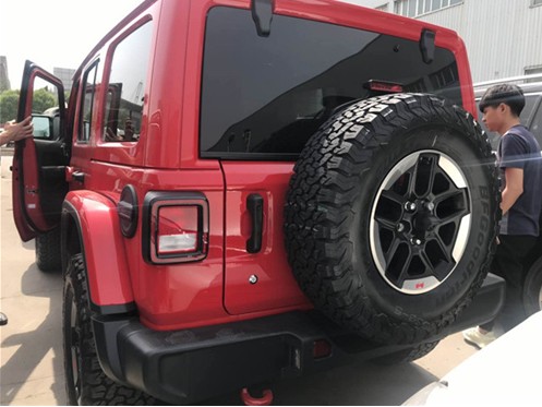 2019款JEEP牧马人依旧保持了高高在上的车身结构,视觉上给人异常庞大的感觉,然而它的长宽高则是4882*1894*1848mm,轴距则是3008mm,这对于中大型SUV来说并不是非常夸张的参数,但是相比牧马人普通型号还是要大不少,主要还是依据越野用途设计。车身侧面是方正平直的造型,同时可以看出轮毂镂空面积变大。到店的是四门版,肯定要比两门版的更加方便,如果生活用车也比较适合。