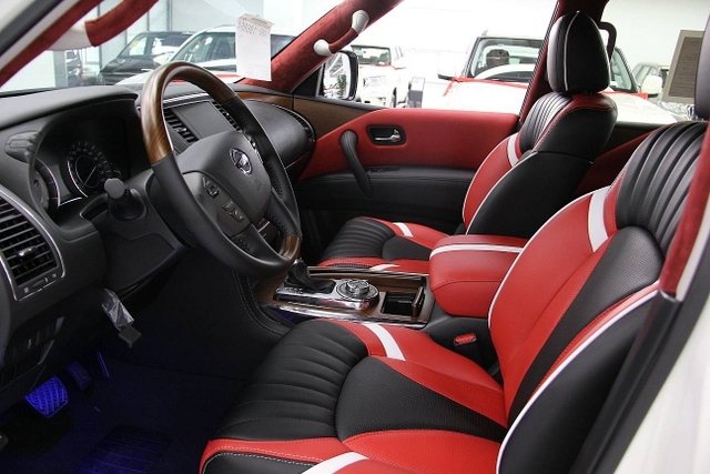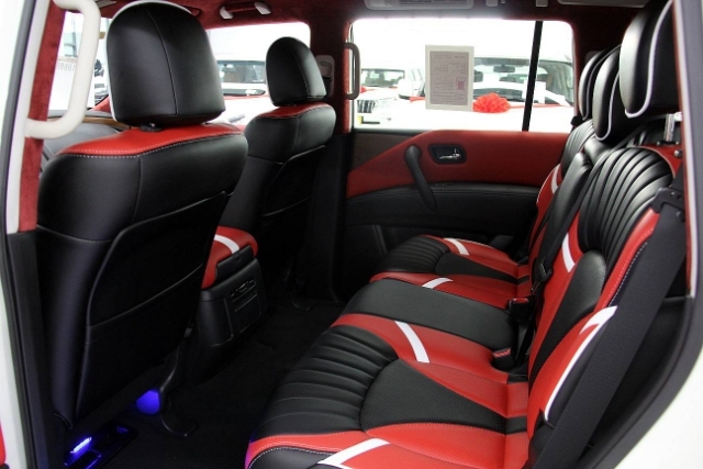 中东版途乐内饰不像外观那样霸气,稍作收敛,仪表盘采用传统的设计,中间的液晶屏幕可以显示常用的行车信息。改装真皮座椅,提升舒适性和豪华性,铝以及木纹样条作为点缀,以浅色调为主,营造出了轻松惬意的驾驶环境。方向盘采用了豪华轿车惯用的四幅方向盘,手感极佳。