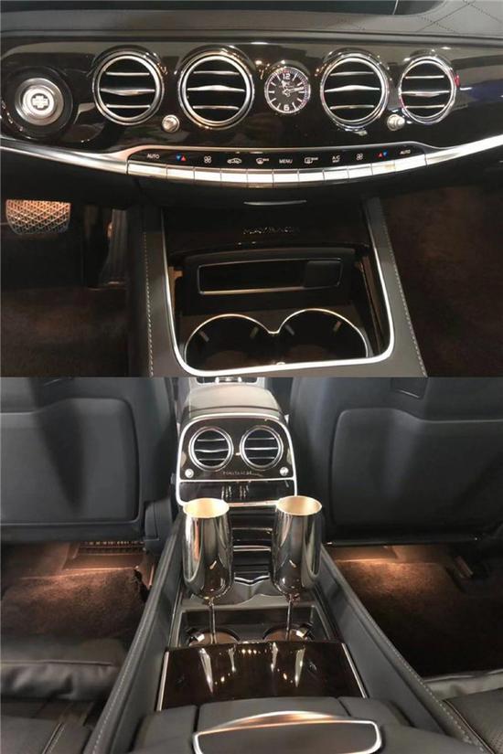 奔驰迈巴赫S650进入车厢内处处弥漫着豪华的氛围,中控台上有大面积的真皮包覆,同真皮座椅一样采用了菱形缝线的设计。哑光银饰和实木饰板的加入,使得整个中控区域更富有层次感。只是三幅式的多功能方向盘不如两幅式那么有岁月感,缩小了环身显然更偏向运动。仪表盘和中控屏同普通的S级一样采用了合二为一的双12英寸液晶设计,中控屏下方还布置了一块价格不菲的万国表,在空调操作区域下方也贴有迈巴赫的身份标识。