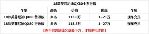英菲尼迪QX80是一款全尺寸SUV,动力方面,英菲尼迪QX80搭载的是一台型号为VK56的5.6L V8发动机,最大功率为324/5800(Kw/rpm),最大555牛米的扭矩在发动机转速达到4000转时爆发出来。传动方面,英菲尼迪QX80采用带有自适应学习程序的手自一体7速变速器。前悬挂采用独立双叉式悬架+横向稳定杆;后悬挂采用独立双叉臂悬架,车身非承载式车身,车辆底盘如车身外观一样敦实强壮。其中手动模式提供了顺序性升/降档操作和降档升速匹配功能
