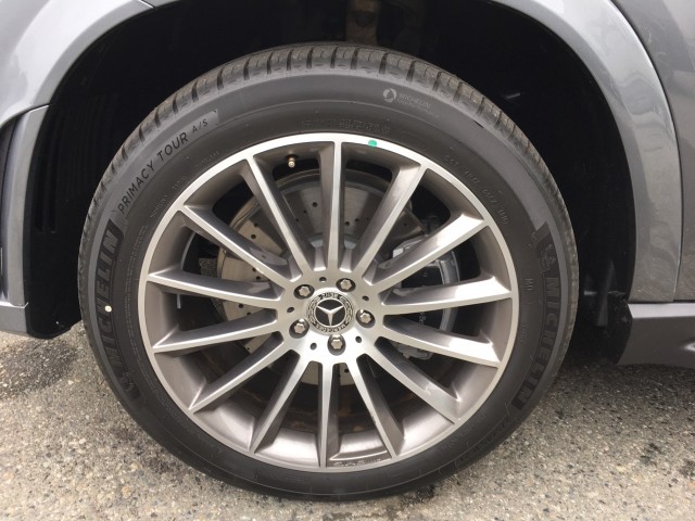 奔驰GLE350运动版车型采用了20寸双五幅轮毂,枪灰色表面还有AMG标志,匹配马轮胎,规格为275/50 R20。