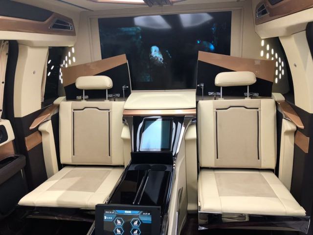林肯领袖一号商务车整体驾驶舱非常简洁、大气,中控台有一个超大的立式显示屏,并且第一排和第二排头枕后方共有四个超大的显示屏。采用桃木搭配设计,高贵典雅,车门拉手按键力度适中,在细节各处都体现了一个豪华车的品质。林肯领袖一号宽敞的乘坐空间足以让您尽享总统般的待遇。