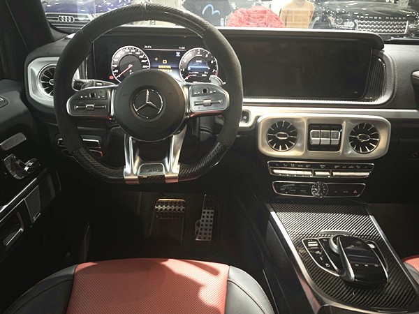 新一代奔驰G63个性选装配置丰富多彩,车身颜色还可选配哑光漆面(磨砂),中控内饰材质:灰色实木内饰,黑色钢琴内饰,碳纤维内饰。