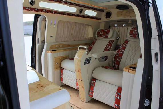 升级的内饰令您感受到更奢华尊贵的礼遇:实木地板更添尊贵地位的象征。原来棉麻布的座椅已经升级为汽车真皮座椅,利用中西式风格的完美结合,体现出车主和宾客的高尚品。奔驰V260L后排多功能航空首长席座椅为12向电动调节的奔驰S级 (配置|询价)座椅(通风 加热 按摩 前后电动调节),也是整车的核心之位,无论是单独调节三段式腿拖还是一键躺平,整个座椅在市场上达到独一无二的舒适度及精致水准。
