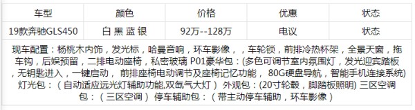 据港口资讯了解到:天津海路丰平行进口车在海外预定的全新2019款奔驰GLS (配置|询价)450现车到店,配置丰富,颜色多选。本公司为了回馈老客户,对这款车做了一个优惠促销的活动,现车配置优惠万元,手续随车当天提走。现车配置颜色齐全,随时可提,全国上。得益于国家的政策扶持,越来越多的汽车消费者开始了解平行进口车这一新生事物。相对普通中规车,平行进口奔驰的性价比非常高。在外观细节内饰舒适性以及动力表现方面,到底如何?今天我们就来实车讲解下。对这款车感兴趣的朋友往下看,拨打下方咨询电话了解最新行情价格。