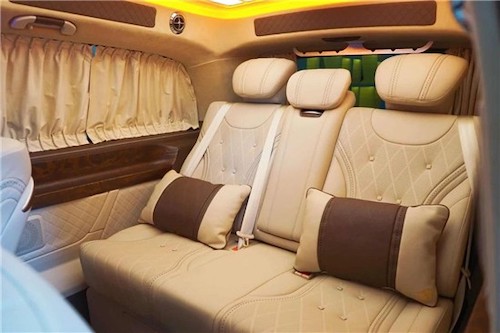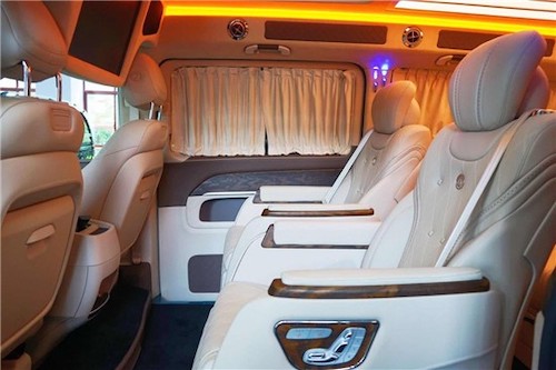 2020款V250改装售价 奔驰V250参数及配置,进口V250商务车改装座椅人体工程学设计,带有一键式展开及记忆功能,并配备加热、通风、气动按摩、一键式伸缩腿托功能,带来头等舱级舒适体验巧夺空间,私家客厅级后舱体验。