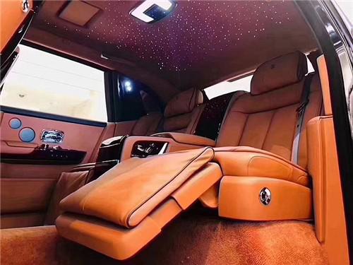 2019款劳斯莱斯幻影加长版的前排座椅,虽然并不是全车的VIP位置,但舒适性却丝毫没有怠慢,柔软的真皮、填充物和宽大尺寸舒适的像沙发。座椅调节项十分丰富,找到一个舒适是坐姿并不是什么难事。副驾座椅控制键、座椅记忆和按摩功能都集成在车门上,配置十分丰富。