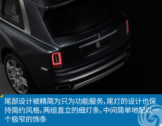 库里南延续了劳斯莱斯标志性的对开式车门设计,两扇车门均可开启近乎90度,以便车内成员方便上下车,配合大尺寸的天窗,让车内乘客感觉更加舒适。车尾部分,库里南较为垂直的后风挡线条向下延伸,在尾部LOGO位置稍稍翘起,之后垂直向下,在保证超大车内空间的同时,不失温和。