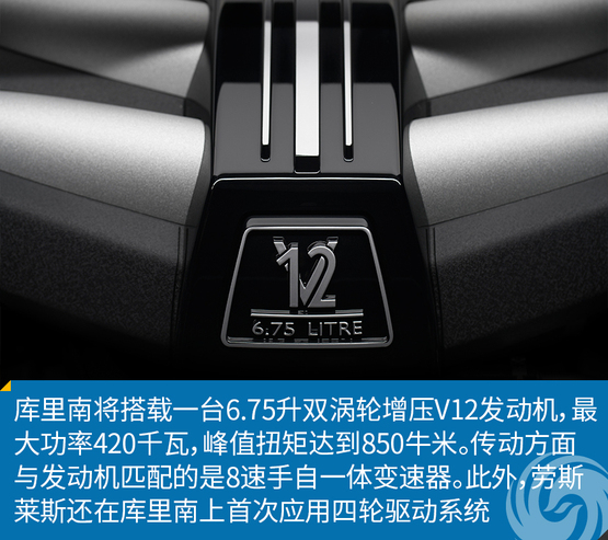动力方面,库里南将搭载一台6.75升双涡轮增压V12发动机,最大功率420千瓦,在1600转每分时即可爆发出850牛米的峰值扭矩。传动方面,该车匹配的是8速手自一体变速器,并配备一套四轮驱动系统,自重达到了2660公斤,但性能表现依然出色。