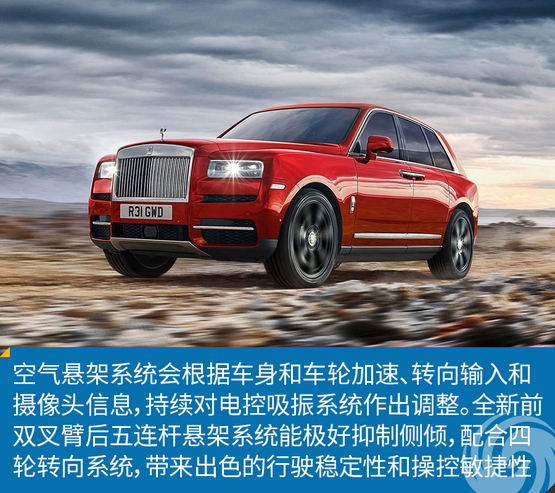 劳斯莱斯库里南采用的更轻车身架构和最新自适应空气悬架系统,确保越野和公路行驶都完美展现劳斯莱斯汽车著名的魔毯般驾乘体验。通过对现有空气悬架系统的全面工程优化——比如加大空气减震器柱以增加空气体积,更好缓冲极端路面的颠簸。