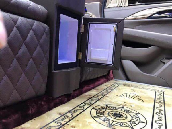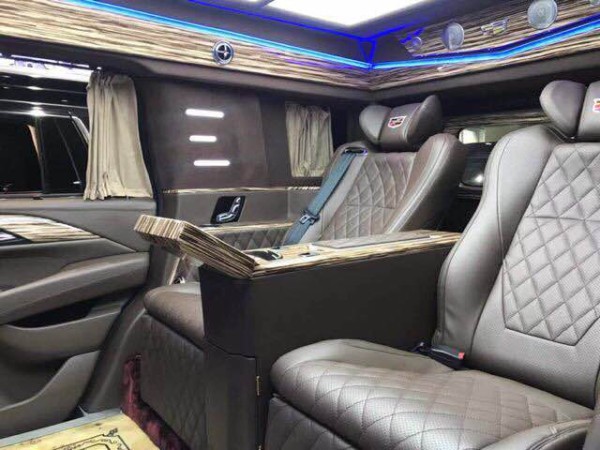 凯迪拉克凯雷德总统一号,加长5.98米,6.2L V8 发动机,10速变速箱,4轮驱动,自动调节悬挂系统,电子转向系统,拖车系统,前舱bose环绕立体声音响,主动噪音消除,收音机、CD、MP3,高清卫星收音机,卡迪拉克CUE系统及8寸导航屏幕,蓝牙系统,12英寸可构建显示及驾驶员信息中心,抬头显示,皮质方向盘,加热方向盘,方向盘带控制中心,按键启动,遥控启动,无钥匙方便进入,12方向皮座椅,加热、通风前座椅,第二排座椅加热、电动可翻倒,四门电动窗、前排可一键上下,前后独立控制舒适空调系统,电动可折叠带加热及转向灯的反光镜,雨量感应雨刷,自动远光前灯,前后停车辅助,电动掀起和划动天窗,22寸铝合金轮毂,电动可调整开启角度尾门,双级开启气囊,头胸部气囊,自动稳定带循迹系统,胎压监控,环影系统,防盗系统,盲点警示,后车流警示,驾驶员警示包。后舱6向高级德国Napa真皮航空座椅带加热及气动按摩,舒适腿托,4区域高级气氛灯,可独立控制,梦幻满天星,V型海燕日光模拟灯光效果,梦幻蓝夜间气氛灯,7寸智能中央控制触摸屏,控制后舱所有电子及电动设备,高级隐藏式秘书座……