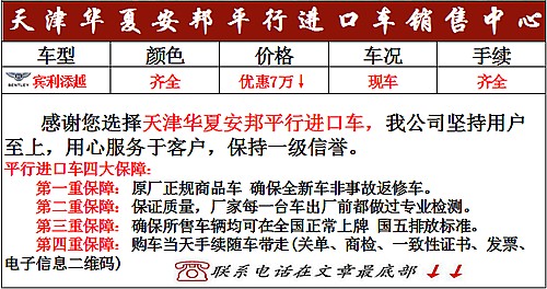都说鱼和熊掌不可兼得,或许平行进口车可以化解这一难题,既可以提到自己想要的配置车型,又非常占据价格优势。近日,在天津华夏安邦国际贸易有限公司了解到,2019款宾利添越 (配置|询价)大量现车在售,8月空前钜惠,机会难得,详情咨询文章底部经销商。对于率先打造超豪华SUV的宾利来说,3年多的经验足以让添越的性能及舒适性更优越,满足消费者需求。