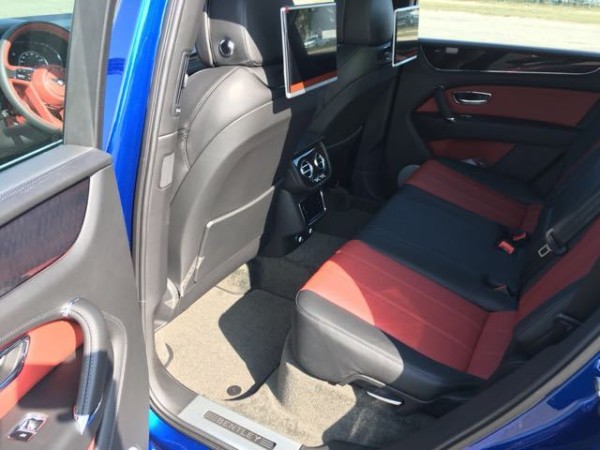 来到后排,奢华的工艺依旧逐一体现,宽大的座椅舒适性表现如前排一样优越。空间方面给人的直观感受就是“够用”!添越的长*宽*高为5141*1998*1742mm,轴距2992mm,定位属于中大型SUV。座椅也非常灵活,靠背可按比例放倒,特殊情况下,可以一侧坐人,一侧拉东西,两不耽误,豪华且实用。