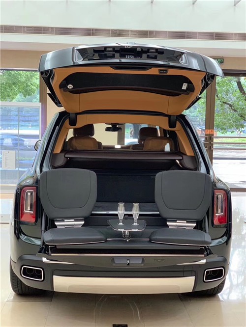 劳斯莱斯库里南的后部存储空间相当充裕。行李厢空间达560升,如果把行李厢和后排座椅之间的隐私分隔屏收起,储物空间可达600升。另外,由于后排座椅底座设计高于行李厢地板,即使两个座椅均下折,行李厢中的物品也会被完好固定而不会向前滑落,这一点与其他品SUV的设计有着本质区别。如放置长形物品,仅需将行李厢地板一键抬升至与座椅底座齐平,便可实现长2245毫米、面积1930升的超大储物空间,让物品在宽敞空间自如安放。