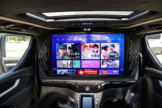 后排独立座舱搭载了43寸高清液晶升降电视,这一代采用了全新的电视联动机构,节省了空间的同时又将前后舱空间做到了最大化,前舱空间也得到了30cm的延伸。所搭载的电视也配备有一键式超静音的升降功能,使用起来非常的方便。