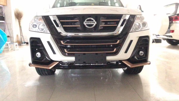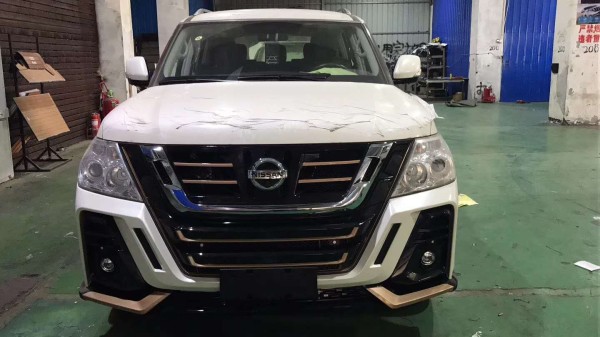 大U型的造型,十分开阔大气,镂空、镀铬、哑光漆面交错,辨识度MAX!正面4个开孔的设计,通过虚实转变的设计语言,增强了造型的纵深感。左右出风口相比市面上畅销的NISMO套件,显得更豪放,这款车在中国的市场定位侧重于实用性,所以我们在设计上针对人群,也有倾向性的考量。车标周围用金属件材料镶嵌点缀,雕刻花纹的精致与整车硬朗的风格形成呼应,诠释铁血柔情。